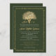 Ouro da árvore vitalícia bat mitzvah convite com um belo cheio de estrelas na árvore ouro e uma borda de texto caprichosa "crescendo no amor da família e dos amigos". O fundo verde contrasta bem com a árvore dourada e o texto deste adorável convite do morcego mitzvah, mas pode mudar a cor de fundo quando se personaliza, se preferir outra sombra.