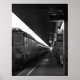 Uma plataforma vazia de estação ferroviária em Veneza (Stazione di Venezia Papais noeis Lucia). Apenas um comboio para Milão (Milano) que está prestes a partir. Uma foto em preto e branco com profundidade e perspectiva.