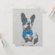 Um belo e engraçado animal de moda tradicional, um buldogue francês com arco azul brilhante e óculos. preto, imagem de filhote de filhote de cinza, vintage, antigo grunge, folha de fundo de cinza angustiada, pavão, coleira, cinza, preto, fofo, divertido, brilhante, risada, moda. Cachorro, animal, cachorrinho, raça de cachorro, animal, amante de cachorro. Personalize-o com seu nome de palavra ou frase favorita clicando no botão personalizar e adicionando texto, escolha a fonte e a cor do texto. Impressão de imagem