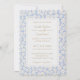 Chic, fresco e brincalhão. Este maravilhoso convite de casamento de dois em um inclui uma solicitação de RSVP no verso com o código Qr. Inclui um conjunto de fontes modernas e de tendências, contra um fundo esbranquiçado e um quadro floral azul e branco empoeirado. O padrão floral é repetido no verso, assim como texto personalizado e código QR. Cheeky e divertido. Personalize para fazer isso seu.