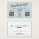 Este cartão-presente de código QR moderno da Tendy com script de caligrafia de na moda é uma escolha perfeita para mostrar sua gradação ao seu cliente. Apresenta 2 código QR, mídia social e informações de rede. Na parte traseira do cartão, você pode escrever mais mensagens para o seu cliente ou simplesmente escrever suas informações comerciais. Seu cliente amará este certificado de presente de código QR bonito e chic.