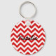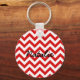 Hip e moderna Trendy Chevron Chaveiro. Este legal chaveiro apresenta um padrão de zag em zague em vermelho e branco. Adicione texto a este design para lhe dar um toque pessoal.