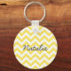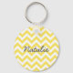 Hip e moderna Trendy Chevron Chaveiro. Este legal chaveiro apresenta um padrão de zag em zague em amarelo e branco. Adicione texto a este design para lhe dar um toque pessoal.