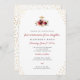 Belo convite da Primeira Comunhão com uma pequena cruz de ouro, um pequeno spray floral burgundy e um pequeno confete de ouro pelos Casamentos de Árvore de Limão. Consulte o cheio acima. Entre em contato com o designer para solicitar itens de coordenação não mostrados em info@lemontreecards.com