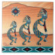 Três azulejos cerâmicos Turquoise Kokopelli
