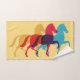Conjunto de toalhas Design de banheiras de três cavalos coloridos com personalização opcional e cor de fundo personalizável.