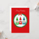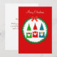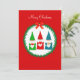Gnomo de Natal fofo e grinalda de pinheiro em cartão de Natal vermelho. Todo o texto está pronto para ser personalizado.