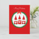Gnomo de Natal bonito e pinheira no Cartão de Saudação de Natal vermelho. Todo texto pronto para ser personalizado.