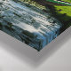 impressão de paisagem canvas de três moinhos de vento ao longo de um canal com barcos e sementes sob um céu azul com nuvens inchadas criando uma cena pacífica no campo holandês de Leidschendam, Países Baixos.