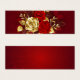 A composição de duas rosas vermelhas pintadas artisticamente e uma rosa ouro, decorada com ouro, folhas de joias sobre fundo texturizado.