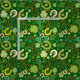 Comemore o dia do rissol do St. usando este tecido dos trevos e das ferraduras para uma variedade de projetos sewing. As características de design um teste padrão da repetição com ferraduras, trevos e pontos em verde, em alaranjado, em amarelo e o branco.