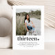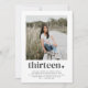 Um convite moderno para o Aniversário, com a sua própria fotografia e a palavra "treze", com um coração por baixo. Você também pode editar toda a cor e estilos do texto, além da cor do coração, se quiser. Basta clicar no botão 'Personalizar' -> 'Editar usando a ferramenta design'.