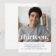 Um simples convite para o Aniversário de 13, com a sua própria fotografia e as palavras "treze" sobre o topo.