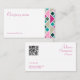 Cartão de visita geométrica abstrato minimalista moderna com esquema de cor fuchsia e turquesa, completada com um código QR. Ideal para vários proprietários de pequenas empresas, incluindo cabeleireiros, maquiadores, consultores e profissionais de cosmetologia. Este design contemporâneo oferece uma maneira visual atraente e funcional de compartilhar suas informações de contato e presença on-line com clientes e clientes.