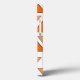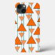 Esta capa de telefone tem um design de triângulos de deco de arte pendurados em linhas de feltro em dois tons de laranja.