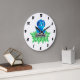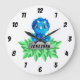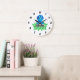 Este é um adorável relógio de parede para o quarto de criança de um menino com uma ilustração de um dinossauro azul bebê sentado numa rocha. Isso faria um presente maravilhoso, e para torná-lo ainda mais especial, pode ser personalizado mudando o nome dele.