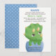 Um pequeno triceratops de bebê verde com chifres amarelos saindo da casca do ovo! Perfeito para o chá de fraldas de dinossauros para a mamãe ser quem espera um bebê. O design é criado digitalmente com um efeito de aquarela. Personalize facilmente os detalhes da parte no modelo de texto fornecido.