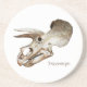 Porta copos de arenito com vista lateral de um crânio de Tricerátops fóssil.