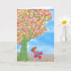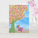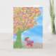 Triciclo sob um cartão de saudação de árvore mágic