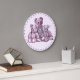 Este Relógio de Parede Acrílica Redonda Redonda de Três Ursos Rosa apresenta três ursos peludos desenhados em caneta e tinta e pintados com um rosa macio. Faz parte da coleção de itens Três Ursos para o berçário, incluindo sombra de lâmpada, travesseiro decorativo, luz noturna e bolsa de cubo de travesseiro. Coordena-se bem com cinzentos e brancos (e o tom direito do rosa-mave). Igualmente adequado no quarto de uma menina grande.