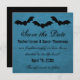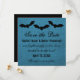 Anuncie aos seus amigos e famílias que marcou uma data para o seu casamento com este design de horrorizado e assustador tema do Dia das Bruxas. Este Trio de Halloween do Bats Salve o Anúncio de data em azul escuro apresenta um fundo de papel texturizado falso e um trio de morcegos sombreados. Fácil de personalizar, simplesmente adicione seus detalhes de casamento. Clique no botão "Personalizar" para encontrar opções para alterar fontes, cores de texto ou adicionar/remover texto.