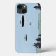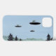 Uma aquarela, caneta e tinta, e desenho a cores de lápis de três OVNIs de disco sobre as montanhas.