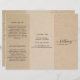Panfleto rústico tríptico com fundo de papel marrom falso. A frente tem o nome da sua empresa com floreios em uma fonte elegante de letra manuscrita, juntamente com o seu título ou serviço. O painel traseiro tem suas informações de contato e o painel de dobra interna tem dois cabeçalhos e caixas de texto. O interior tem vários modelos para informações sobre o seu negócio nos painéis externos e uma lista de preços no painel central. Este design simples e feminino é ótimo para um negócio de artesanato feito à mão.