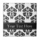 Essa elegante trivit personalizada de azulejo cerâmico preto e branco damasco pode ser personalizada com seu nome na design de fita adesiva de contraste. Este azulejo personalizável pode ser enquadrado ou adicionado a uma caixa de manutenção. Projetado por Chrissy H. Studios, LLC.