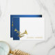 Azul escuro com trompetes dourados com cartão plano obrigado você para elogiar convites.