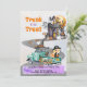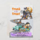 Especialize seu evento de Halloween com nosso adorável e personalizável convite de Tronco ou Tratar! Projetado para crianças e adultos, este convite apresenta um charmoso design de aquarela com uma menina pirata montando em um caminhão decorado com o Halloween. O caminhão, enfeitado com um chapéu de bruxa fofo, vai em direção a uma mansão assombrada cheia de fantasmas amigáveis. Perfeito para festas de crianças divertidas e assustadoras, eventos de igreja, reuniões de comunidades e festividades de vizinhança, nosso convite é versátil e engajador.
