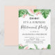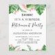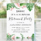 Palmas Tropicais Verdes e Flores Rosa Esbranquiçadas Flores Cor de Água Shhh ... Os Convites de festas de Reforma Surpresa incluem uma magnífica e elegante tipografia da escrita com modernas flores rosas botânicas, cor-de-rosa, e verde tropical havaiano.