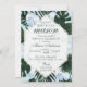As folhas tropicais marble, convite de aniversário azul. Projetados com ricos em água e luxuosos botânicos de folha de palma tropical verde e falsos balões azuis com brilho de ouro estão maravilhosamente organizados para criar este design de convite ousado, moderno e na moda. As palmeiras tropicais são dispostas para criar uma moldura na moda que apresente os detalhes do convite mostrados num fundo texturizado de mármore falso. Uau, com essas lindas, elegantes e trendy folhas tropicais e falso design de convite para o aniversário do balão azul. O verso apresenta um padrão de linha geométrica exclusivo contra um fundo azul claro para complementar o trabalho de arte frontal com uma imagem do balão azul solteiro onde você pode colocar os destinatários Iniciais. Todas as ilustrações contidas neste convite para chá de fraldas verde tropical são obras de arte originais desenhadas à mão pela Moodthology. Você pode personalizar o tamanho do texto, a cor do texto, a fonte e o layout para sua preferência de design pessoal.