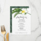 Cartões "Menu" de casamentos com folhagem tropical e belos sotaques florais. O padrão no sentido inverso, das folhas verdes claras, é definido na cor de fundo de sua escolha. Use o modelo fornecido para personalizar seus nomes e data e menu de casamento. Procure ID475 para ver outros produtos com este design, incluindo convites de casamento correspondentes e muito mais.
