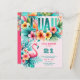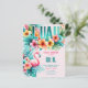 Divertido Aniversário temido Tropical Luau, piscina, praia, convite de festas temático para meninas com cores quentes e cor-de-rosa-quente. E veja o Flamingo!