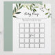 Este chá verde tropical deixa o jogo do bingo do bebê perfeito para um simples chá de fraldas. A design apresenta lindas folhas verdes pintadas à mão, enfeitando um quadro geométrico dourado.