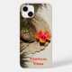 Sinta as Víblias Tropicais desse chapéu de sol e o brilho do hibisco laranja brilhante florescerem nas sombras de uma palmeira lançada na areia. Personalize facilmente este caso divertido, feminino e chique com o seu nome. Carregar do sonho de umas férias de praia com você em qualquer lugar que você vá. Esta é a fotografia floral original de JLW_PHOTOGRAPHY