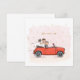Uitnodigingskaart bruiloft met unieke illustratie van bruidspaar in een rode mini cabrio in een mediterrane sfeer