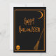 Um design de laranja e gótico preto minimalista com os símbolos assombrosos do Halloween, uma lua crescente, um crânio e uma vassoura de bruxa. Para aquele truque especial de Halloween ou presente para o Halloween. Entre no espírito assustador com nosso cartão de saudação de Halloween ou Treat! Este presente festivo é perfeito para festas de Halloween.