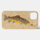 Pescar truta marrom após isca de pesca com mosca seca. Mão desenhada pela artista ©Tina Hesskew de Fisheries Hunting Life.