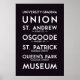 Poster do estilo de rollsign da Comissão de Trânsito de Toronto. Os recursos param ao longo da linha de metrô Yonge-University-Spadina. Lista de estações em poster: Sinalização "Universidade-Spadina", União, Rua. Andrew, Osgoode, Rua. Patrick, Queen's Park, Museum.