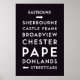 Poster do estilo de rollsign da Comissão de Trânsito de Toronto. Os recursos param ao longo da linha de metrô Bloor-Danway. Lista de estações em poster: Sinalização "Eastbound", Sherbourne, Castle Frank, Broadview, Chester, Pape, Donlands, Sinalização "Streetcar".