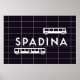 Esta poster da estação Spadina elegante apresenta a fonte do metrô Toronto com a conhecida caixa de ruas e decalque e tiling do trem.