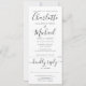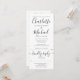 Um convite de casamento preto e branco tudo em um com nomes em letra cursiva moderna e tipografia elegante. O convite inclui um cartão de RSVP que pode ser destacado e detalhes de informações para os convidados. Criado por Thisisnotme