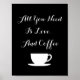 TUDO O QUE PRECISAS É AMOR E poster. Trendy Black e White poster com uma citação engraçada de inspiração. Na moda com tipografia de caligrafia com logotipo da xícara. Design de decorações bonitas para compro de café, loja, cafetarie, café, restaurante, cozinha, escritório, etc. Decoração personalizada para amantes de café e viciados em cafeína.