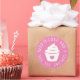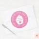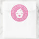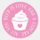 Tudo o que você precisa é amor e adesivos redondos de cupcake. Design fofo com slogan personalizado. Adesivos redondos modernos personalizados com seu texto. Faça seus próprios adesivos para festa. Adesivos e selos divertidos para casamento, aniversário e mais. Rosa ou cor personalizada com ícone de coração.
