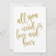 Uma elegante placa de casamento de ponta, mostra o texto "Tudo que você precisa é amor e cerveja" em uma letra extrovertida, a textura brilhante acrescenta um toque festivo e glamouroso. A cor de fundo pode ser personalizada de acordo com as suas necessidades e preferências, contacte-me se tiver alguma solicitação especial.