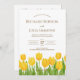 Este convite de casamento de tulip romance amarelo floral é perfeito para um primavera ou verão ou outono ou casamento no inverno. Os lados frontal e traseiro são cuidadosamente projetados, e as cores amarela e verde são misturadas harmoniosamente. Ele apresenta caligrafia, sans serif, fontes serif. Sinta-se livre para modificá-lo e usá-lo.