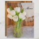 Tulipas Brancas Russas no Menu Casamento Mason Jar