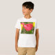 Esta camisa floral bonito mostra uma fotografia de tulipas de franja vermelha e amarela. A foto foi tirada usando macro fotografia, resultando em detalhes tão brilhantes que você pode ver as pequenas bordas e as sutis mudanças na luz atuando sobre a tulipa vermelha central. A design é mostrada aqui em uma árvore branca para meninas, mas também está disponível em outros estilos e cores de roupas para crianças, bebês, mulheres e homens.