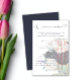 Elegante design floral com script de estilo manuscrito moderno e tulipas brancas e pretas de primavera. O texto pode ser facilmente personalizado para um único design único para o seu dia especial.